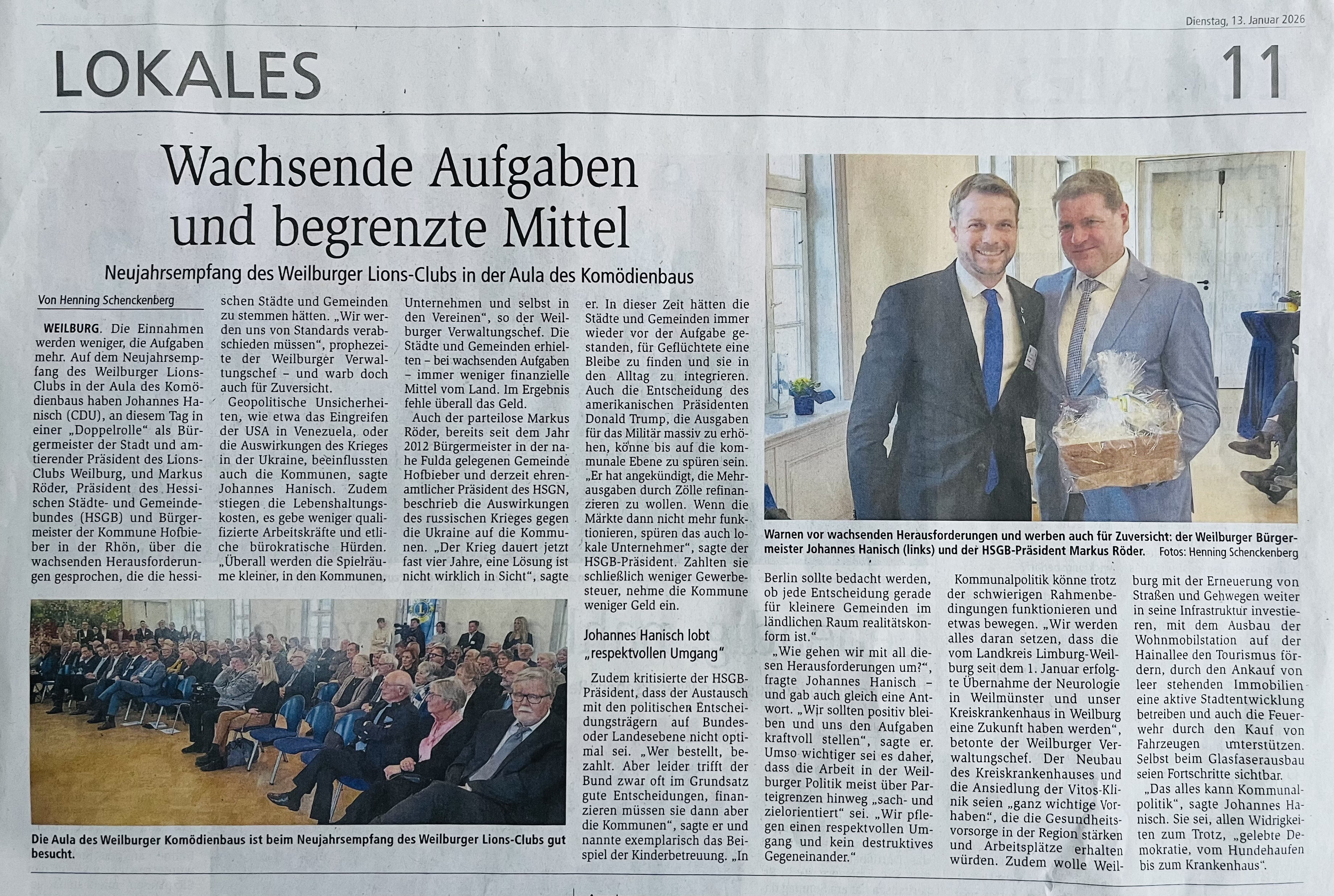 Wachsende Aufgaben und begrenzte Mittel, Weilburger Tageblatt